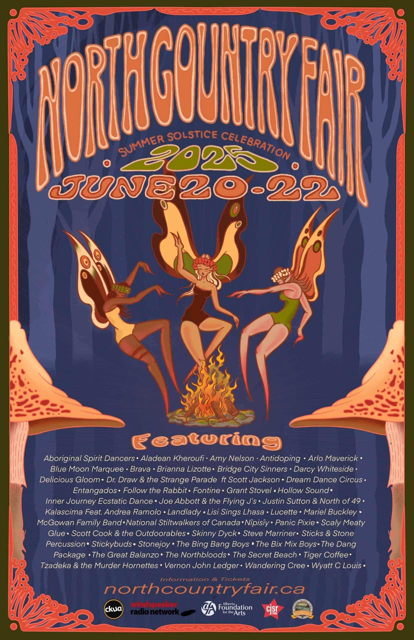 A Summer Solstice Celebration and Music Festival The gate opens on Thursday June 18, 2026 at 8:00 AM. We are not able to provide early entry or allow a line up on the entrance road before then. The next North Country Fair will be held Friday June 19 to Sunday June 21, 2026 Camping at North Country Fair is always free! North Country Fair is on June 19 to 21, 2026 The Fair Starts In: 00days00hours00minutes00seconds This countdown has been ended already! NCF Artist Releases 2025 Online Fair Tickets Online Store North Country Campground Our Supporters